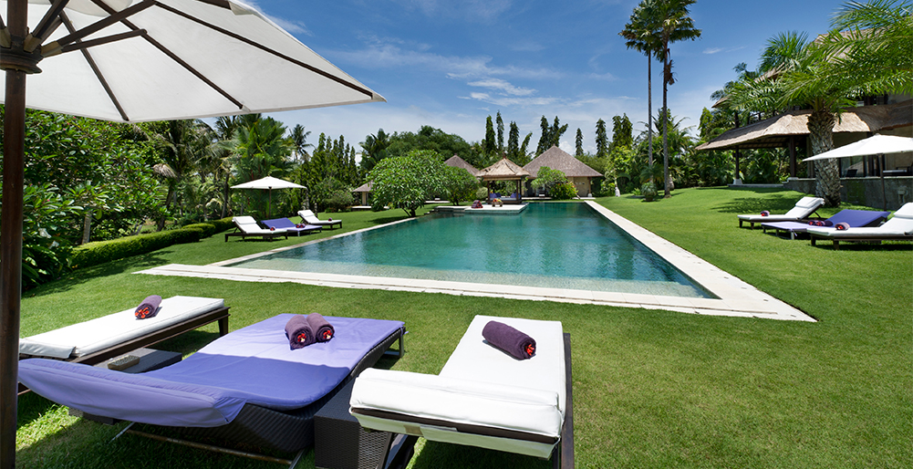 Pictures. The villa is built on 5,300sqm of stunning tropical paradise. The swimming pool has a floating gazebo.