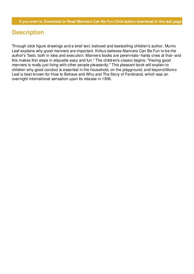 Munro leaf, beloved author of the story of ferdinand, decided to try his hand at defining good munro leaf is best known for the story of ferdinand, first published in 1936 and a bestseller ever. Some of the published credits of munro leaf include manners can be fun, brushing y. Munro leaf is currently considered a single author. if one or more works are by a distinct, homonymous authors, go ahead and split the author. All material available on this site which is available for download is collected from various opensource platforms.