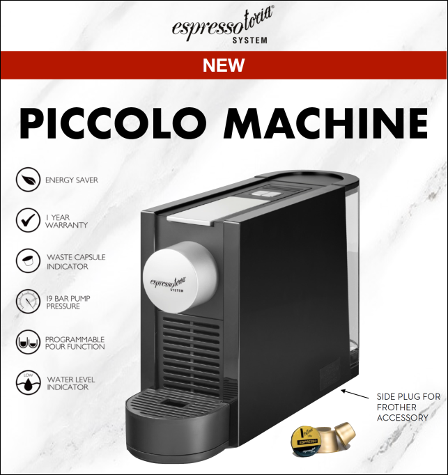 Download Espressotoria Piccolo Coffee Machine PNG. Capsule bundle (12 packs, 144 capsules). Introducing the new piccolo coffee capsule machine.