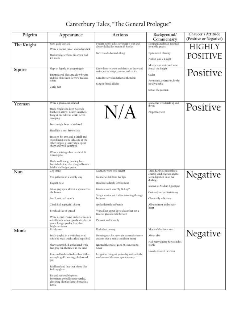 Get The Canterbury Tales General Prologue Character Chart Background. Later on, the host accuses him of being silent and the knight the first pilgrim chaucer describes in the general prologue and the teller of the first tale. The general prologue was probably written early in the composition of the canterbury yet what is key about the information provided in the general prologue about these characters.